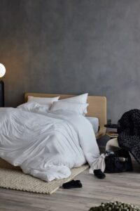 One of the unique aspects of these sheets is that they don’t use a traditional thread count at all. Instead, they’re measured by fabric weight and density, coming in at 180 GSM (grams per square meter). This metric is commonly used for performance fabrics, reflecting durability and structure rather than thread count alone. At 180 GSM, the Graph-Iced Sheets strike a balance between lightweight breathability and a more substantial feel, supporting cooling performance without feeling flimsy.