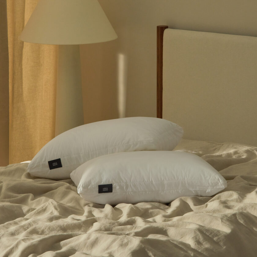 Cleaning the Silk & Snow pillow is straightforward. The outer shell of the pillow is machine-washable, which we recommend using a cold wash cycle and tumble-drying on low. In my experience, the pillows felt fresh for a long time without having to clean them extensively, making my life easier. They did not get lumpy or lose their fluffy feel after washing, indicating great quality and durability.